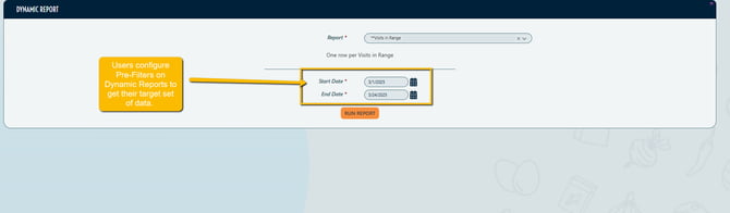 - Pre-Filters: On many Dynamic Reports, Users configure pre-filters in order to see a specific set of data: