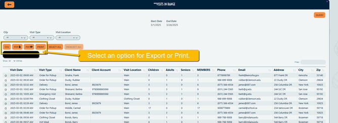 - Export: Users can export or print Dynamic Reports by clicking the applicable option near the top of the screen.