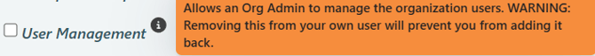 A new role, User Management, has been added and can now be assigned to Org Admins. This role grants Org Admins the ability to manage all users within the organization, including adding, editing, and removing user accounts as needed.